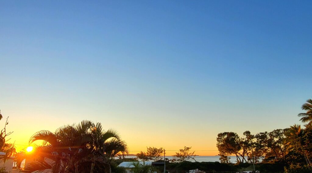 I went back to bed to continue the meditation. The man went onto Sahasrara chakra. Finally I was settled and wasn’t disturbed. The Bija mantra of Sahasrara chakra is the soundless breath exhalation “Ah” . It was all quite extraordinary in the moment, he kept telling me to remember that I always exist in the moment. The meditation progressed as dawn became to appear through my bedroom window. There was one star shining in-line with my crown chakra. We chanted the soundless sound that is the sound at the end of Sarah. I have the sacred mantra ah in my name and I never even knew. No wonder I am on this spiritual journey. The horizon above the line of the dark sea slowly turned vivid orange fading upward into the darkness as night faded. The sky even turned deep violet as he said to imagine the sky becoming deep violet.